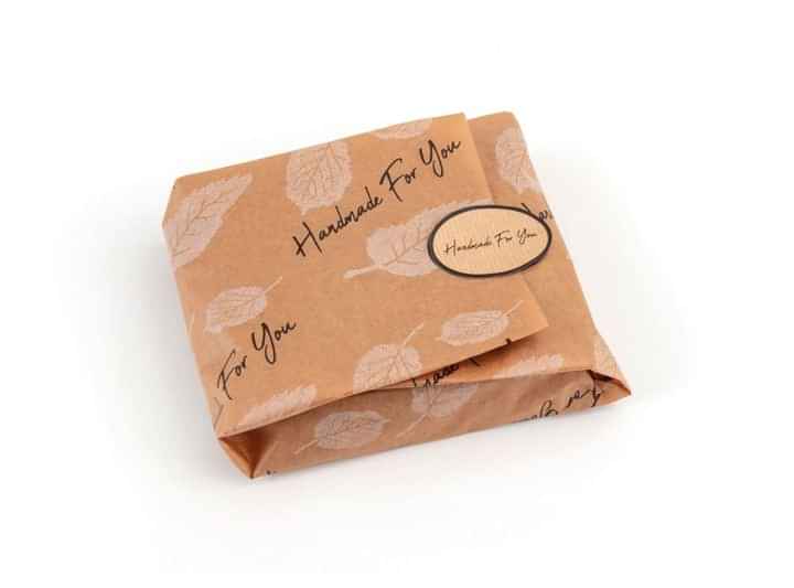 Kraft-finish oval label with bold black border and ‘Handmade For You’ wording. Use these food label stickers to seal Back To Nature Deli Paper parcels as well as to highlight your handmade offering. Made from 100% recycled content material. The food stickers can be recycled on pack along with the packaging.