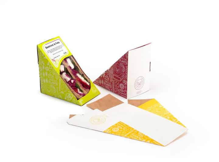 This colourful sandwich wedge packaging comes in mixed boxes of three deliciously fruity shades – mango, berry and lime. Provided flat packed, to form simply squeeze the sides of these vibrant packs and seal using the clip-in tab. Finish with a Botanical Plus label.