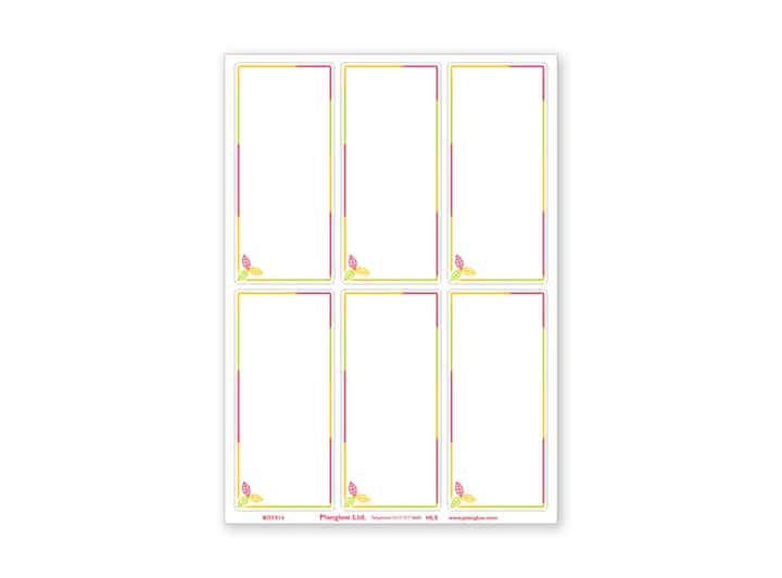 Add a vibrant strike of colour with our brighter, bolder Botanical 6 per sheet label. It’s subtle yet eye-catching design offers a deliciously colourful border and clean, botanical detailing. Created especially for full labellers, basic product information sits on the front of the pack, while barcodes, nutritional, ingredient and allergen information folds over on the back also forming a breakseal. Suitable for use with both inkjet and laser printers.