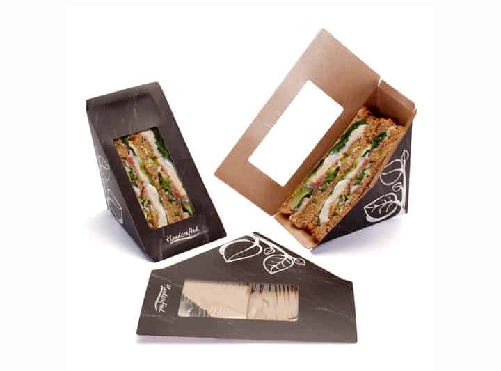 Made from plant-based materials, this sandwich wedge features a bold plant design that states the handcrafted nature of produce.