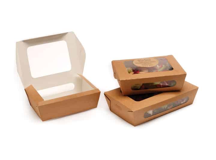 Available in large and small, the Natural tuck-top salad pack has a clever plant-based side window, which enables customers to view the contents of the pack whilst stacked on the shelf. Sold in boxes of just 200 and suitable for 24hr usage, the packs are great for creating a Natural rustic image on your shelves. The packs look great with our Simply Natural Round Label.