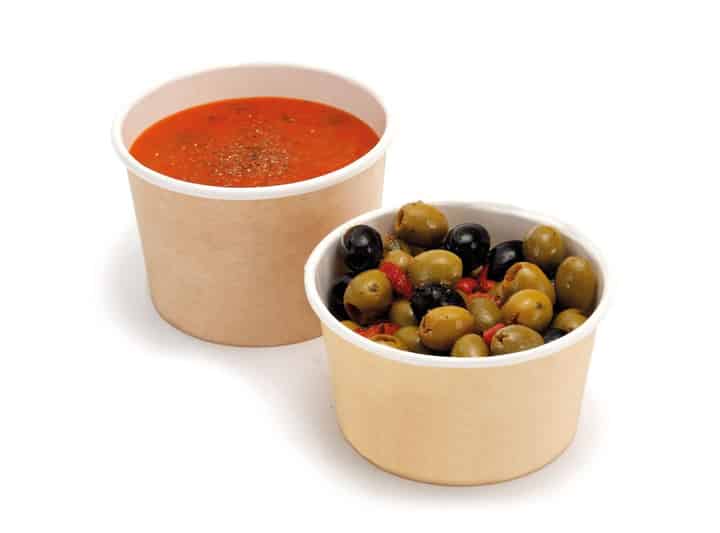 This recyclable and compostable soup container also moonlights as an ice cream takeaway tub, disposable deli portion pot and everything in between, while offering an alternative to plastic disposable bowls or tubs. Featuring a water-based liner and water-based inks, like all of our takeaway paper pots, the 16oz Natural pot has been certified industrially compostable (where facilitated) and home compostable which means it can be disposed of in a home compost heap. It may also be recycled. Compostable lid options also available.