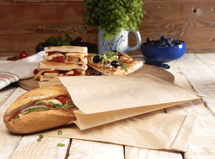 Made with a very fine silicone lining, this grease-proof bag can hold the cheesiest of paninis or sauciest of pizzas without fear of rips, tears or damaged bags; reducing risk of cross-contamination and enabling an overall cleaner and allergen-free kitchen environment. Pair with paninis, pastries, wraps, baguettes and pizzas, as well as garlic bread.