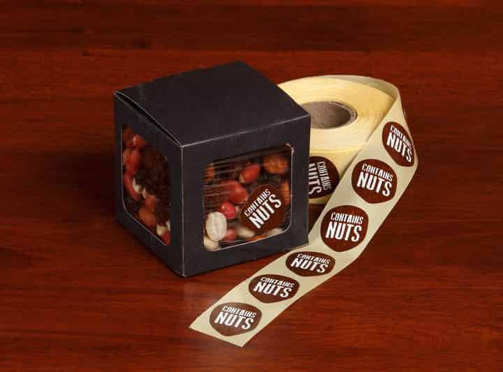Our 'Contains Nuts' sticker is a great way to highlight allergen information on pack.