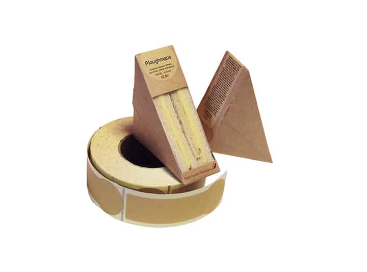 Presenting our best-selling Natural kraft label in a circular fold-over design. This spacious label is for large volume label users allowing you to display core product information front of pack and ingredients on the back while also forming a tamper evident break seal. Tailored to fit both standard-fill and deep-fill wedges (not to mention a host of other products) and fully compliant with Natasha’s Law, this roomy rustic label creates the ultimate Natural finish. Matt label on rolls, suitable for thermal transfer printers and applicators.