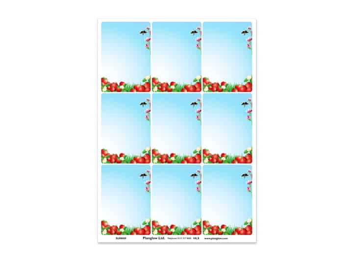 Summer labels are available in two sizes with bright fresh colours and seasonal strawberries to set off your seasonal products to perfection. Use the small label for basic product information or the large to show more data.